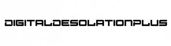 A bold, futuristic font with geometric shapes and a digital aesthetic.