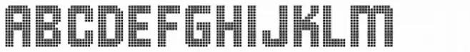 A digital-inspired, segmented font with a bold, geometric design.